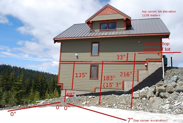 The high corner of lot 5 is exactly 1108 meters. The existing excavation has changed the original topography.